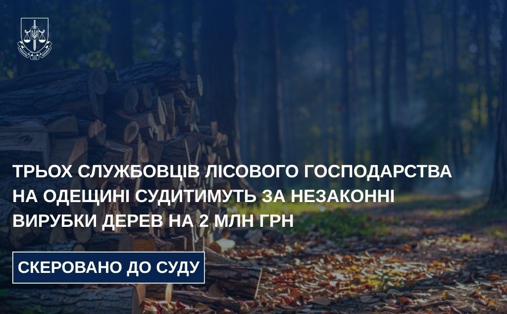 Трьох службовців лісового господарства на Одещині судитимуть за незаконні вирубки дерев на 2 млн грн