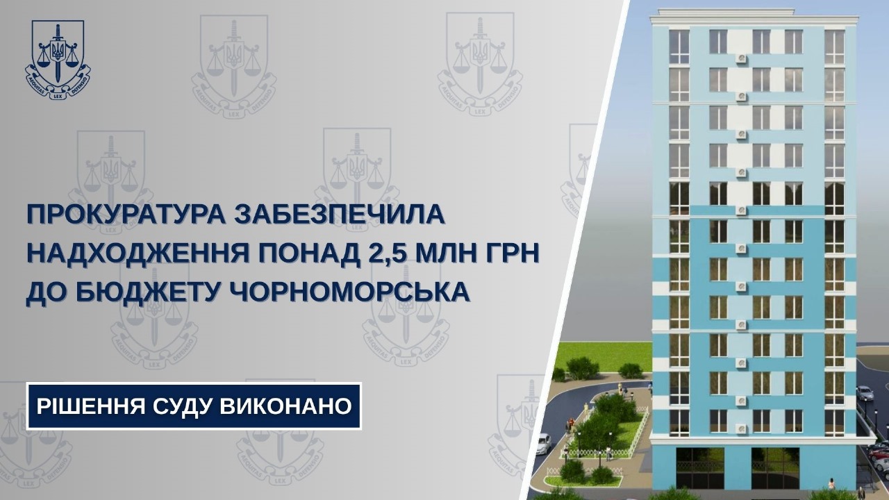 Прокуратура забезпечила надходження понад 2,5 млн грн до бюджету Чорноморська
