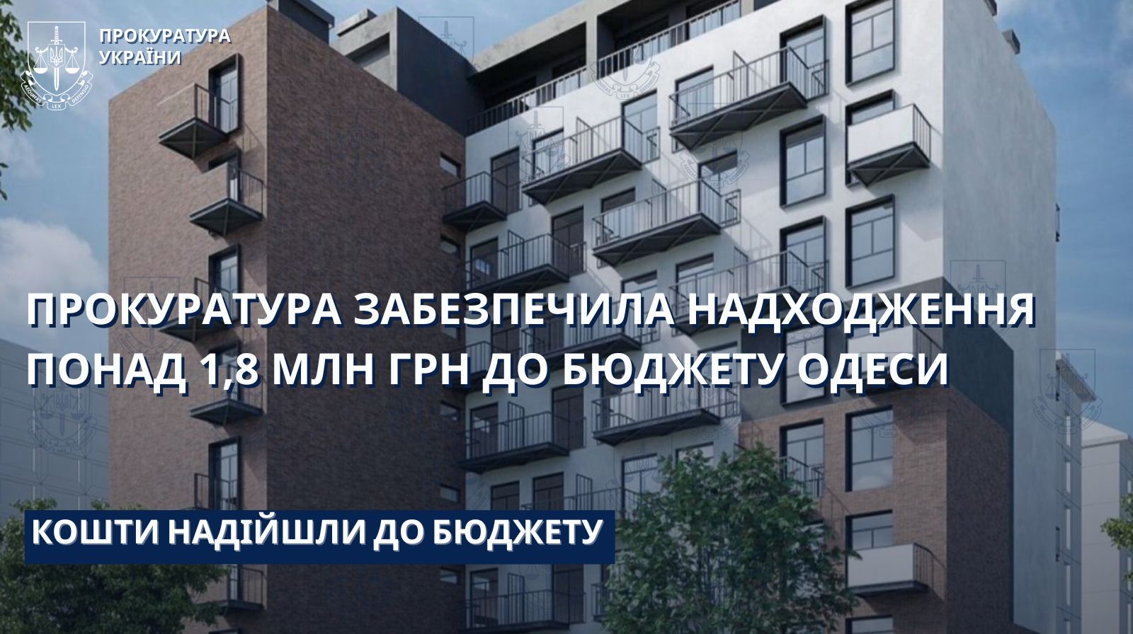 Прокуратура забезпечила надходження понад 1,8 млн грн до бюджету Одеси